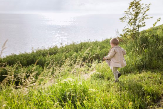 Baby boy (18-23 months) walking towards sea