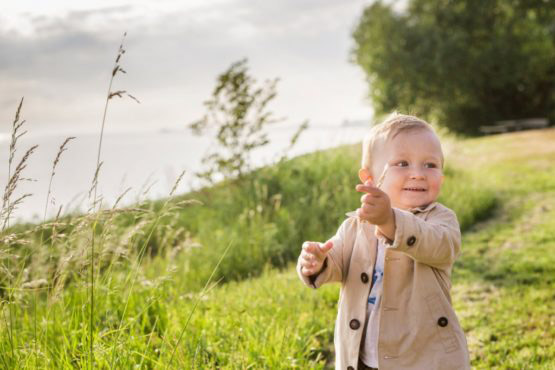 Baby boy (18-23 months) standing by sea