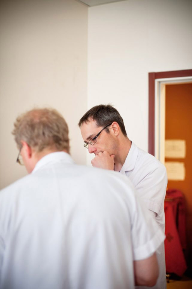 Male doctors standing in office at hospital