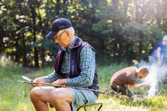 Family Time,Leisure,Recreation,Together,Bonding,Preparation,Horizontal,Outdoors,Day,Full Length,Five People,Preschool Age,2-3 Years,25-29 Years,55-59 Years,65-69 Years,Young Women,Mature Women,Boys,Mid Adult Men,Senior Men,Father,Mother,Son,Grandfather,Grandmother,Grandson,Multi Generation Family,Childhood,Adult Offspring,Two Parents,Family With One Child,Nature,Sunlight,Tree,Meadow,Tranquil Scene,Backpack,Cheerful,Togetherness,Picnic Table