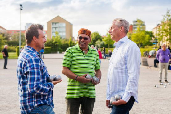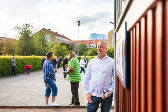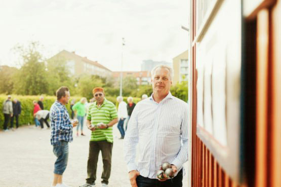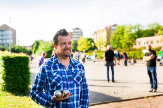 40-44 Years, Activity, Ball, Boule, Casual Clothing, Clear Sky, Color Image, Competition, Day, Enjoyment, Focus On Foreground, Fun, Grass, Happiness, Holding, Incidental People, Leisure Activity,...