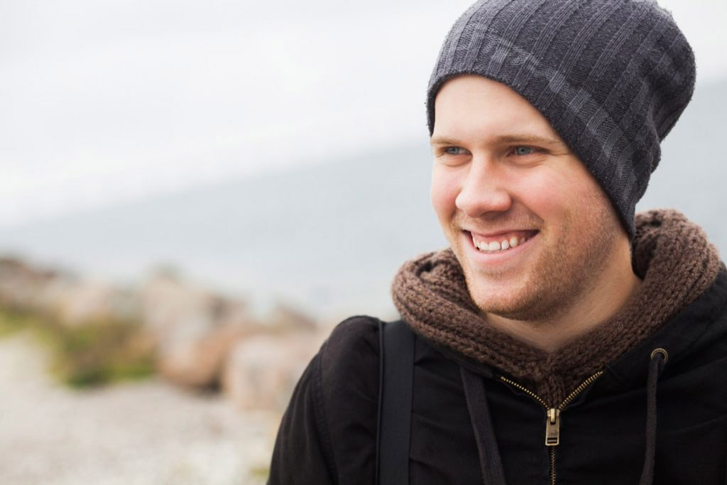 20-24 Years, Black Color, Cold Temperature, Color Image, Day, Focus On Foreground, Front View, Happiness, Headshot, Horizontal, Knit Hat, Lake, Leisure Activity, Lifestyles, Looking Away,...