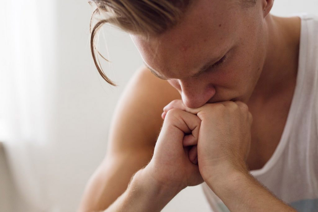 Horizontal,Indoors,Day,Side View,Three Quarter Length,Selective Focus,Sitting,One Person,18-19 Years,One Young Man Only,Caucasian Ethnicity,Smart Phone,Window,Living Room,Sofa,Distraught,Loneliness,Stress,Suffering,Worried,Depression,Pensive,Backlit,Problems