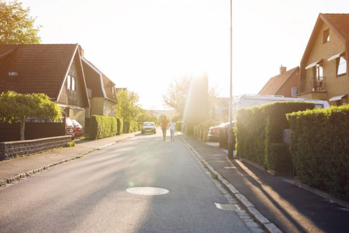 Horizontal,Outdoors,Day,Portrait,Carrying,Standing,Baseball Cap,Blonde Hair,Five People,18-23 Months,4-5 Years,8-9 Years,25-29 Years,30-34 Years,Girls,Young Women,Boys,Mid Adult Men,Father,Mother,Son,Daughter,Two Parents,Family With Three Children,Sunlight,Building Exterior,Architecture,Residential District,Suburb,House,Road,Tranquility,Bonding,Togetherness,Hedge,Casual Clothing,Malmo,Skane,Sweden