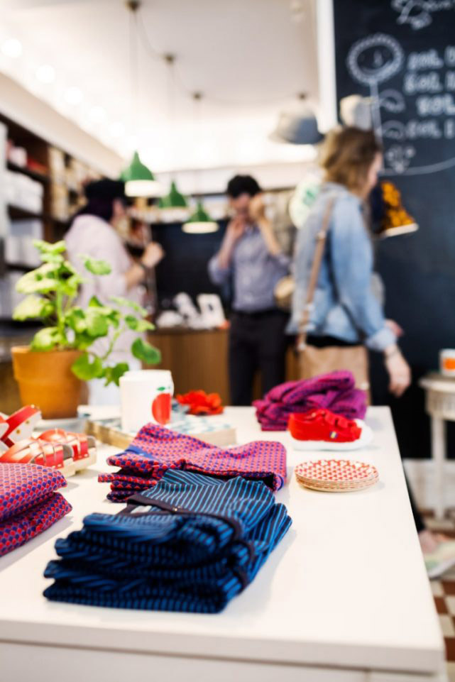 Clothes displayed on table in store